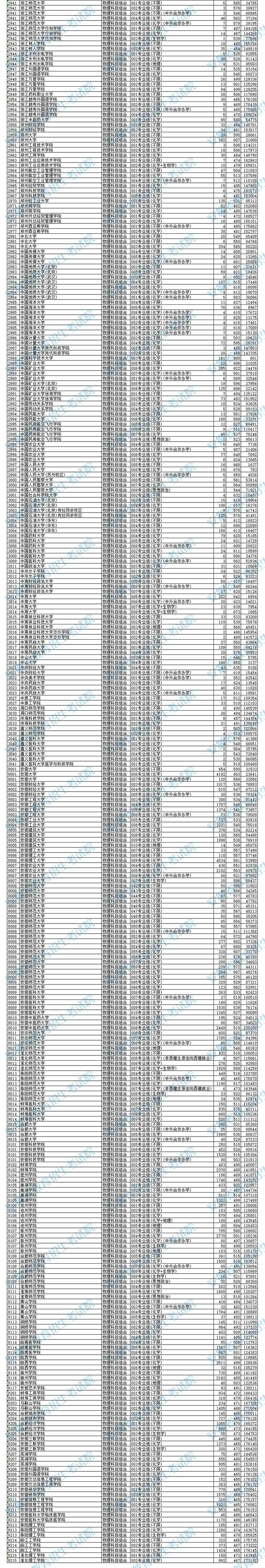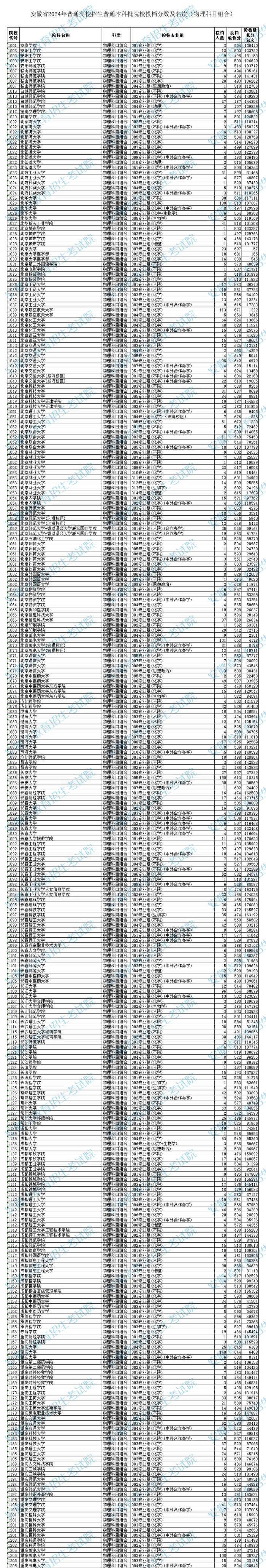 安徽省2024年普通高校招生普通本科批院校投档分数及名次(物理科目组合)