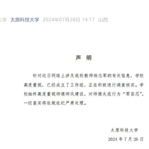太原科技大学26日发布一则声明: