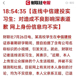 7月26日,中信建投证券回应媒体称,视频内容涉及公司客户敏感信息,违反了公司合规管理规定。目前,公司已责令该学生终止研学,并按照公司相关规定对有关责任人启动问责程序。