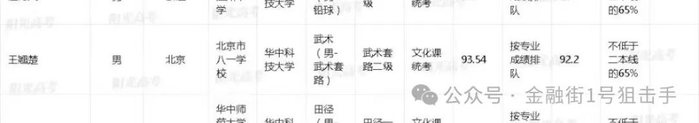 根据网络信息,其以不低于一本线65%的体育生身份录取了华中科技大学。
