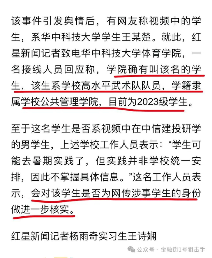 华中科技大学体育学院则表示,该学院确有一个同名的学生,系2023级学生,高水平武术队队员。