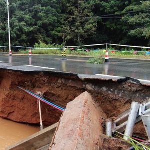 据央视新闻消息,7月27日凌晨,受台风“格美”带来强降雨影响,江西赣州定南县岭北镇省道S456线K23+800处路基发生坍塌,暴涨的洪水将省道部分路基掏空,护栏也落入水中,坍塌长度达50米。同时,河水还冲毁了一座入户水泥桥,给当地居民的出行和生活带来安全隐患。