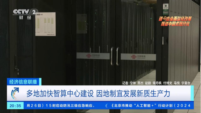 7月26日,中央电视台《进一步全面深化改革 推进中国式现代化》系列报道播出新一期节目,报道中生动呈现了中国联通合作伙伴大会上的元景大模型现场演示,深入介绍了中国联通新一代网络——算力智联网AINet,并实地采访了中国联通上海临港智算中心、宁夏中卫云数据中心。