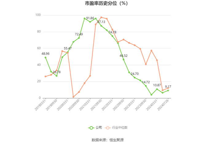 市盈率为负时,不显示当期分位数,会导致折线图中断。