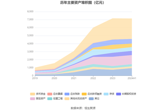 资产重大变化方面,截至2024年上半年末,公司交易性金融资产较上年末增加222642.63%,占公司总资产比重上升2.42个百分点;应收款项融资较上年末减少20.51%,占公司总资产比重下降1.57个百分点;货币资金较上年末减少3.52%,占公司总资产比重下降1.20个百分点;应收账款较上年末减少9.25%,占公司总资产比重下降0.81个百分点。