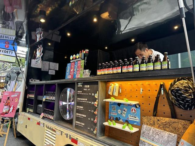 记者注意到,现场50家参与市集的品牌中,不乏近年来常在上海各大市集出现的“熟面孔”。白熊啤酒就带来了品牌标志性的啤酒餐车,颇具打卡拍照的标识度。