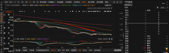 资料显示,*ST深天上市已超过30年,是深圳市最早从事商品混凝土生产的专业公司。自2020年开始,*ST深天营收连年下滑,已经连续4个年度亏损。因公司2023年度经审计的期末净资产为负值,且审计机构对公司2023年度财务报告出具了无法表示意见的审计报告,公司股票已于5月6日起被实施退市风险警示。另外,*ST深天还存在实际控制人林宏润及其关联方非经营性占用上市公司资金的情况。截至2023年年报披露日,林宏润及其关联方占用公司资金余额1.37亿元,占公司最近一期经审计净资产的685%。二级市场方面,*ST深天自今年1月4日高点迄今股价累计最大跌幅73.61%。