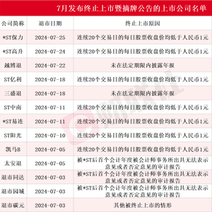 ▌7月已有13家上市公司完成退市 10股收到终止上市事先告知书 *ST深天锁定A股市值退市第一股