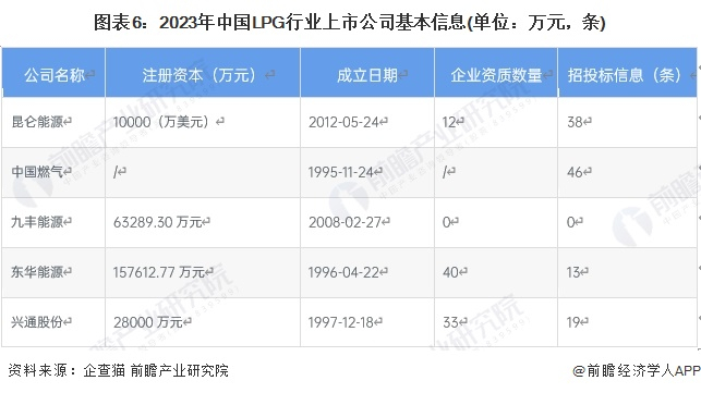 从LPG行业的上市企业布局和已有公开信息分析,注册资本最多的是东华能源,同时,东华能源成立时间最早,昆仑能源招投标信息最多。