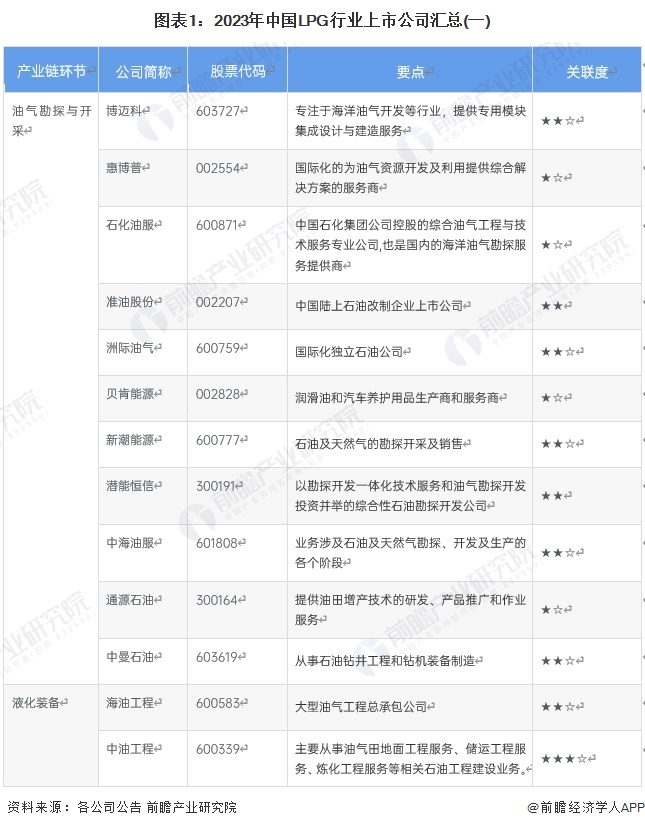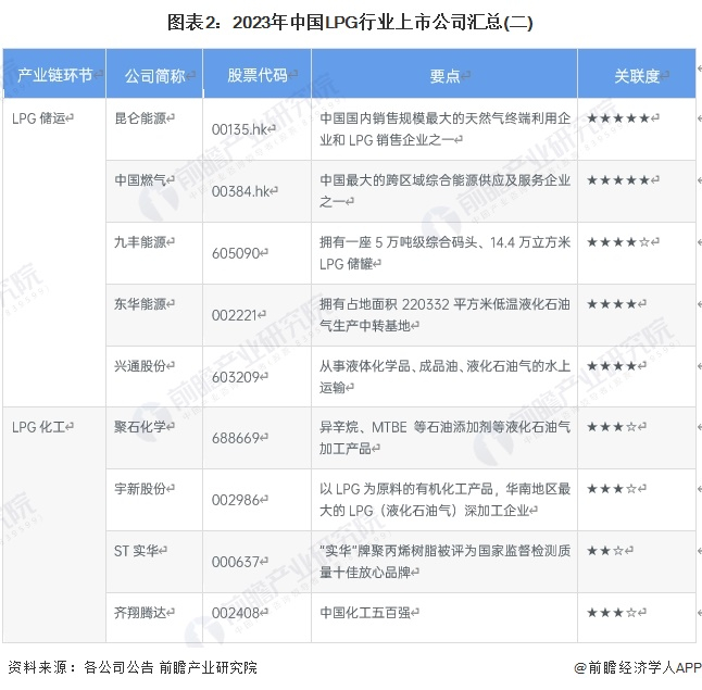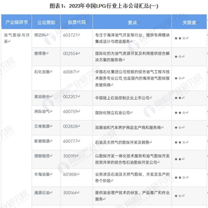 目前,我国以LPG为主营业务的上市企业较为有限,但LPG产业链上下游较为庞大。其中中游LPG储运环节主要有昆仑能源、九丰能源、东华能源等上市企业。