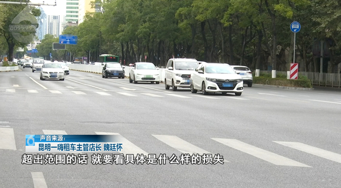昆明一嗨租车主管店长 魏廷怀:“就看他购买了什么样的保障,如果买了就看相应的车损,在这个范围内都不需要承担(赔偿),超出范围就要看具体是什么样的损失。”