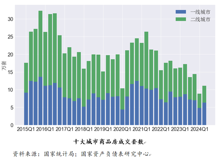 今年5月,中国人民银行、国家金融监督管理总局发布了《关于调整个人住房贷款最低首付款比例政策的通知》,对于贷款购买商品住房的居民家庭,首套房最低首付款比例调整为不低于15%,二套住房最低首付款比例调整为不低于25%,还取消全国层面首套住房和二套住房商业性个人住房贷款利率政策下限。同时,个人住房公积金贷款利率也下调了0.25个百分点。住房贷款政策松绑,住房交易规模回暖。十大城市二季度商品房成交套数有所恢复,一线和二线城市在二季度的商品房成交共11.3万套,相比一季度增加了近3万套的交易量。其中,一线城市成交6.36万套,二线城市成交4.76万套,一线城市的交易恢复速度非常明显。但从整个二季度来看仍然处于历史较低水平。一线城市住宅平均价格略有回升,二三线城市房价基本稳定。积极的政策信号对房地产交易和房地产贷款的拉动作用尚未显现,政策效果有待观察。