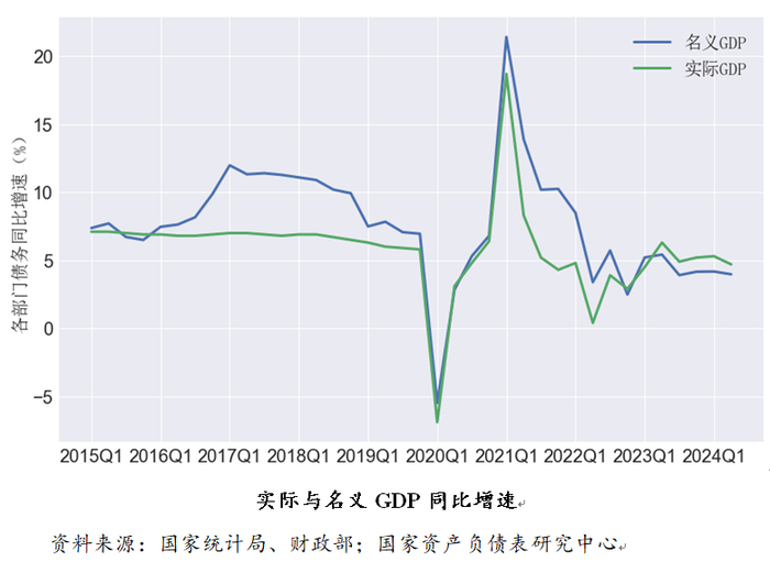 2024年二季度的债务增速继续下行,同比增速降至8.3%,再创2001年以来的新低。与之相对应,M2增速降至6.2%,M1增速为-5.0%,社融增速也仅为8.1%。实体经济债务中,居民、企业和政府的债务同比增速分别为3.8%、7.8%和15.2%。居民债务增速再创新低;企业部门债务增速继续回落;政府债务增速仍维持在较高位置。在贷款利率不断下降的环境下,居民和企业的加杠杆意愿有限。政府债务虽然在二季度继续上升,但仍无法抵消私人部门债务增速的下降,导致总债务增速继续下降。
