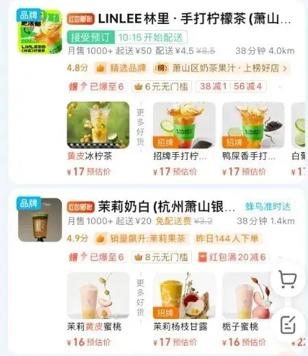 此外,某外卖平台饮品类负责人表示,黄皮产品的全国搜索词对比上个月上涨了120%,外卖订单量环比上涨80%。在外卖平台上搜寻“黄皮”产品,以奶茶居多,包括黄皮冰柠茶、藏青盐黄皮、茉莉黄皮蜜桃等,价格在15—25元不等。