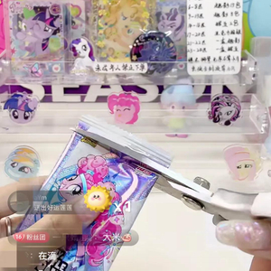 以当下极为流行的小马宝莉卡为例,包括趣影、彩虹、辉月、暮光等多种包装,每包售价从2元至10元不等,卡牌还分为R、SR、SSR等不同等级。