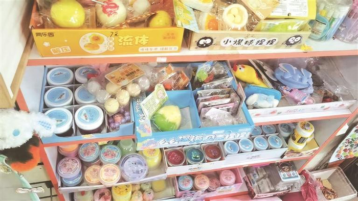 学校周边商店普遍售卖“捏捏乐”、水晶泥、起泡胶、假水等玩具。