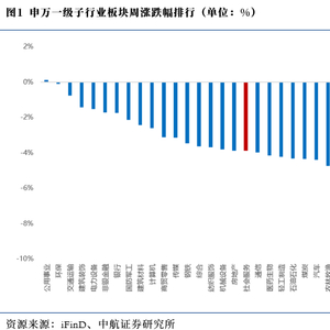 社会服务(申万)板块指数周涨跌幅为-3.89%,在申万一级行业涨跌幅中排名18/31。