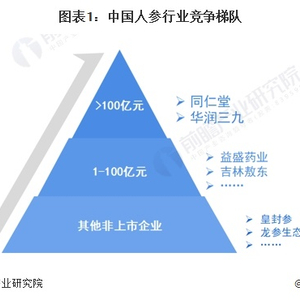 我国人参行业竞争分为三个梯队。第一梯队为上市企业,年营业收入在100亿元以上,包括同仁堂、华润三九等。第二梯队为年营业收入不足100亿元的上市企业,如益盛药业和吉林敖东等。第三梯队为非上市企业。