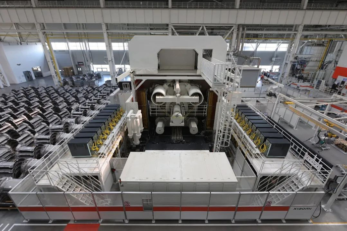 顶着小米LOGO的巨大建筑,就是SU7的诞生地。这里按功能划分为6个生产车间——压铸车间、冲压车间、车身车间、涂装车间、总装车间以及电池车间。相比传统的造车企业的四大工艺,多出了压铸车间和电池车间。
