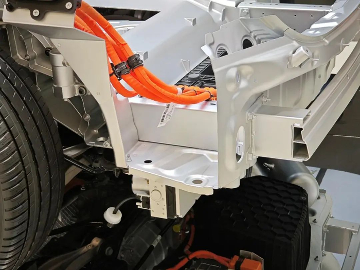 引入压铸件,改进了传统冲压焊接的制造方法,避免因零件多且复杂造成的人力、时间成本的浪费。在9100吨压铸机内,可将72个零件融合在一起,焊点减少840个,减重17%,使生产用时减少近一半,有效提升了整车性能。