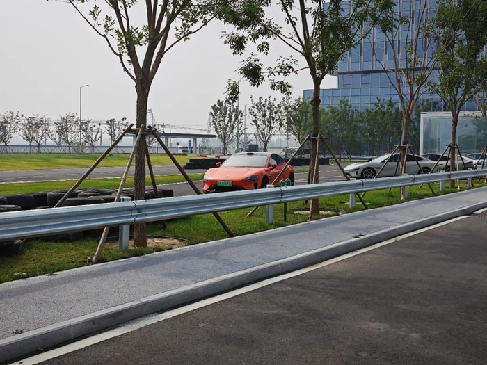 位于厂区内的测试跑道及测试车辆