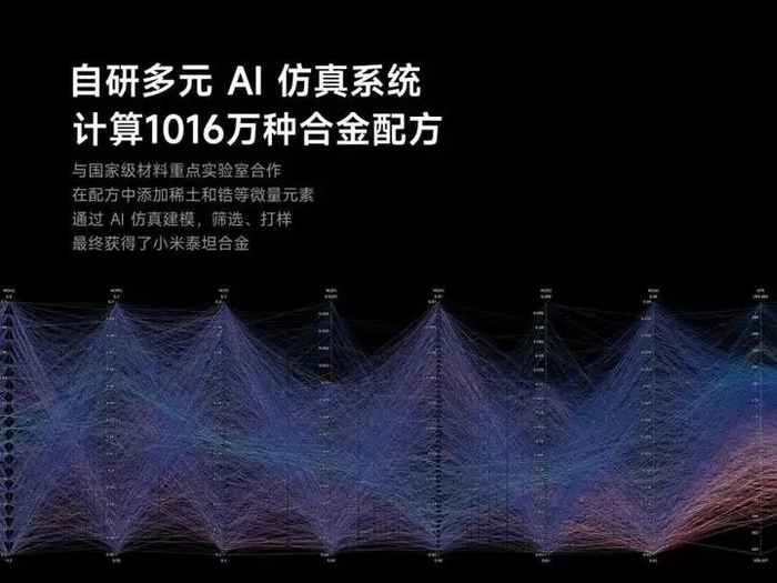 值得一提的是,泰坦合金在研发过程中,还引入AI技术。通过小米自研的“Material Expert Ensemble”模型,在数以万计的模拟仿真实验中,预测1016万种配方的性能,从而筛选最适合小米技术路线的“小米泰坦合金”。类似利用科技优势、赋能传统制造,从何实现传统生产力向新质生产力转变的案例还很多。
