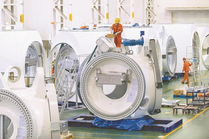 一台风机,生产实现“碳中和”:远景能源射阳基地通过建立能碳管理系统、产线智能化升级、电动交通替代等措施,从源头推进节能降碳;