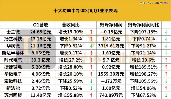 01 Q1功率半导体公司,业绩分化