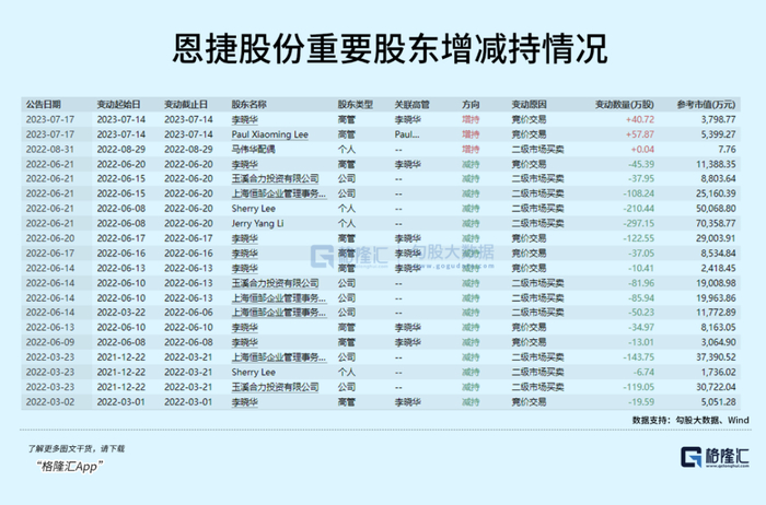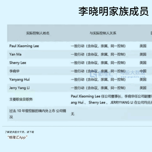 在这一份中,包含Paul Xiaoming Lee(李晓明)、李晓华、高翔(持股1.92%)、何宝华(因涉嫌受贿落马的原国家烟草专卖局副局长何泽华的家族核心同辈成员,持股2.1%)等股东所持股份,但是未包含新加坡人Tan Kim Chwee、Yan Ma(马燕,李晓明妻子)、Alex Cheng(程跃)分别持有的上海恩捷5.14%、3.25%、1.53%股份。