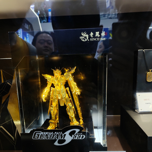 一是重达1公斤的“自由高达”黄金立像。该立像采用999足金材质打造,全球限量10件,售价高达88万元。据老凤祥介绍,从机体线条流畅性到细节雕刻,该立像百分百还原“机动战士高达SEED”形象。