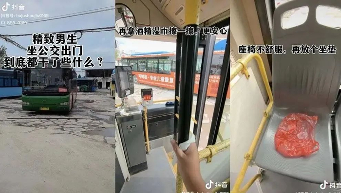 就算是坐公交车也要体面。不能忘了给把手消消毒,给座位铺好坐垫,给塑料瓶子里插朵花。