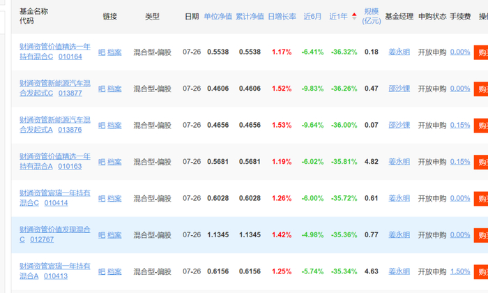 天天基金网显示,财通资管管理规模超过1000亿元,有138只基金,基金经理人数为22人。近一年来,财通资管在管的多只基金产品亏损超过30%,包括财通资管价值精选一年持有等。
