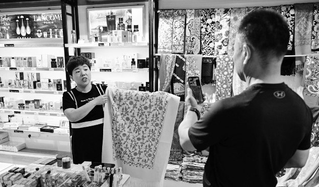 在中哈霍尔果斯国际边境合作中心,游客在免税店挑选商品。自2023年11月10日中哈互免签证协定正式生效以来,新疆霍尔果斯口岸出入境人数呈现大幅增长态势。连日来,位于中国(新疆)自由贸易试验区霍尔果斯片区的中哈霍尔果斯国际边境合作中心迎来边境游、跨境游、购物游客流高峰。新华社记者丁磊/摄
