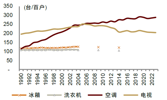 注:冰箱、洗衣机保有量部分年份数据未披露资料来源:日本内阁府,中金公司研究部