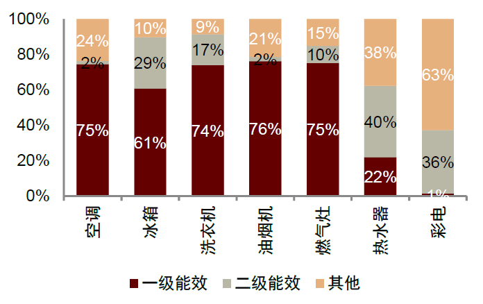 家电行业在2008-2013年间经历了两轮节能惠民补贴,家电品牌商长期以来也积极推广节能高效产品,目前国内大部分家电品类都以高能效产品为主。