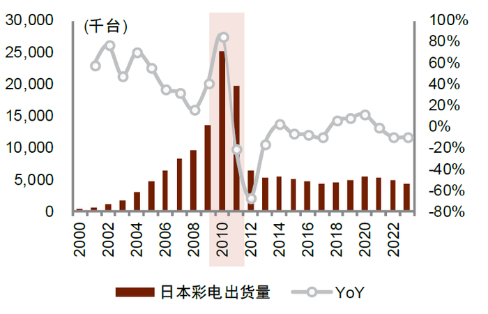 日本补贴对家电整体零售拉动明显。1)根据日本电机工业协会(JEMA),2010年日本家用电器整体出货额23676亿日元,同比+11.5%,结束连续三年的下滑,增速达到长周期同比增速的高点,政策刺激效果显著。2)自政策实施至2011年5月,积点政策累计拉动冰箱、空调、平板电视共计约2200万台出货量、约2.6万亿日元的销售额(日本环境署数据)。