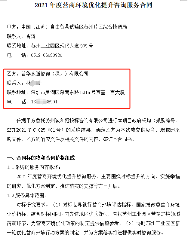 山海新财经发现,从苏州工业园区2份(2020年度和2021年度)营商环境优化提升咨询服务的政府采购合同,似乎可以印证马翔宇在举报信中所反映的一些内容。