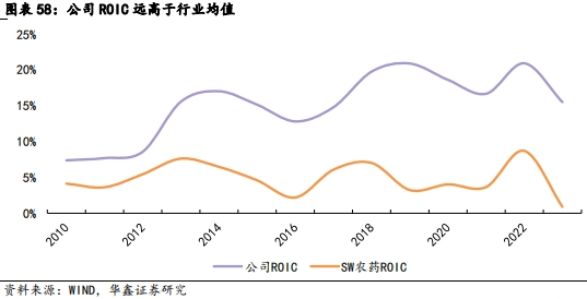 2023年业绩承压,2024Q1环比改善。2014-2023年,公司营收由28.2亿元增至114.78亿元,CAGR为17%,归母净利润由4.55亿元增至15.65亿元,CAGR为15%。受农药行业景气度下行影响,公司2023 年营业收入同比下滑27%,归母净利润同比下滑13%。2024Q1公司营收约31.76亿元,同比减少29.43%;归属于上市公司股东的净利润约4.29亿元,同比减少43.11%,环比增加110.10%。