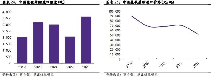 反倾销调查申请获准,打响农药对印价格保卫战。国家商务部决定自2024年5月7日起,对原产于印度的进口氯氰菊酯进行反倾销立案调查。我国进口的氯氰菊酯全部来自于印度。2019年至2023年,来自于印度的申请调查产品的进口数量总体呈大幅增长趋势。2019年至2023年,进口数量分别为2049吨、3199吨、3003 吨、2065吨和3602吨,2023年相比2019年累计大幅增长近76%。2019年至2023年,氯氰菊酯进口价格总体呈大幅下降趋势,进口价格累计大幅下降了42.07%。如果此次反倾销调查最终裁定倾销成立,将有助于为该农药品种的发展营造一个良好的竞争环境,有助于提升国内相关厂家生产积极性,恢复国内供应体系,提升产品价格。