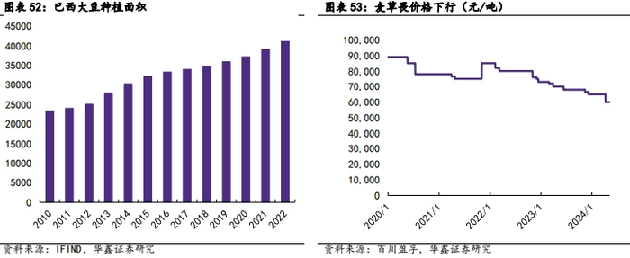 麦草畏价格进入底部,巴西双抗转基因大豆种植空间巨大。目前麦草畏价格已下行至6万元/吨,随着行业去库完成未来价格有望回升。在2021年种植季,拜耳第三代转基因大豆Intacta 2 XTend在巴西上市,标志着巴西正式开始种植抗麦草畏的转基因作物。该大豆可以耐受Dicamba除草剂以及虫害,2022/2023年度的播种面积约为430万公顷,远高于上年的24.3万公顷,将占到2022/2023年度巴西大豆总种植面积的约10%。随着抗麦草畏转基因种子在巴西的推广及国内转基因批准的下达,麦草畏产品销售前景广阔。
