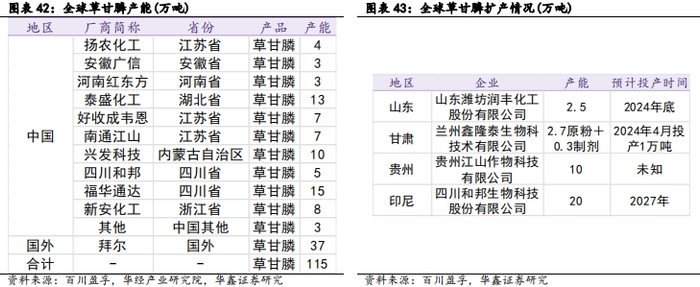 中国是全球主要草甘膦生产国,扩产空间有限。