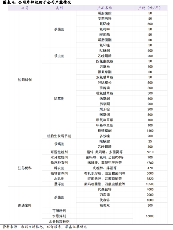 2019年扬农化工完成对农研公司、中化作物的100%股权收购。中化作物主要从事农药产品的经销和贸易业务,中化作物子公司沈阳科创主要产品包括硝磺草酮、咪草烟和吡蚜酮 等。农研公司主要从事创新原药研发,拥有目前国内较为完善的新农药创制体系,建有农药国家工程中心和国内唯一的新农药创制与开发国家重点实验室。2020年扬农化工全资子公司优嘉公司完成对南通宝叶100%股权的收购,拓展了优嘉公司的地域发展空间。