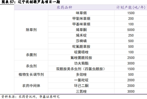 葫芦岛项目拟建设 11 条生产线,15650吨农药原药包括:1500t/a咪草烟、 200t/a甲氧咪草烟、 100t/a甲基咪草烟、 5000t/a烯草酮、 250t/a烯禾啶、 500t/a莎稗磷、 100t/a啶菌恶唑、500t/a吡氟酰草胺、500t/a多效唑、3000t/a功夫菊酯、2500t/a氟唑菌酰羟胺、 1500t/a双酰胺类杀虫剂。7000 吨中间体包括:2000t/a一氯吡啶、2000t/a环己二酮、3000t/a三氮唑。