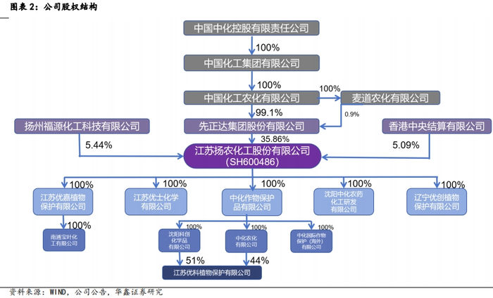 2021年扬农集团、先正达集团完成标的股份过户登记手续,扬农集团不再直接持有扬农化工股份,公司控股股东变更为先正达集团,公司实际控制人为国务院国有资产监督管理委员会。扬农化工将与集团内成员单位持续深化合作,在技术研发、生产供应、市场渠道拓展等方面得到更多的协同机遇,特别在生产制造端凭借良好的产品质量、成本优势,将获得更多的发展机会,从而实现“研、产、销”全面布局。