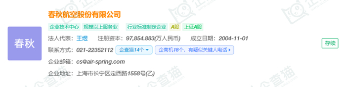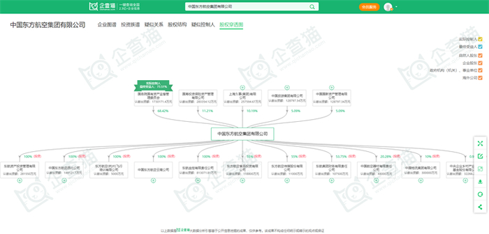 根据企查猫数据,中国东方航空集团有限公司(以下简称“东航”)总部位于上海,是中国三大国有骨干航空运输集团之一,前身可追溯到1957年1月上海成立的第一支飞行中队。