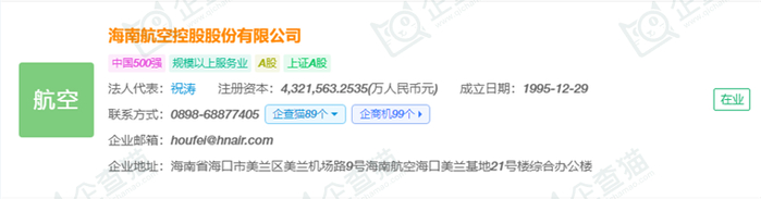 海南航空控股股份有限公司(以下简称“海南航空”)于1993年1月成立,起步于中国最大的经济特区海南省。
