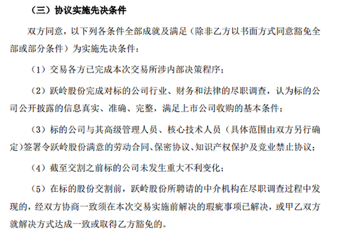 此后,跃岭股份于4月3日向交易对方指定账户支付500万元作为本次交易的意向金;并于4月30日、5月30日、6月29日披露关于筹划重大资产重组的进展公告,均表示,公司根据相关规定,积极组织各中介机构积极开展对标的资产的尽职调查以及审计、评估等工作,并就上述重大资产重组事项同各相关方持续沟通协商。