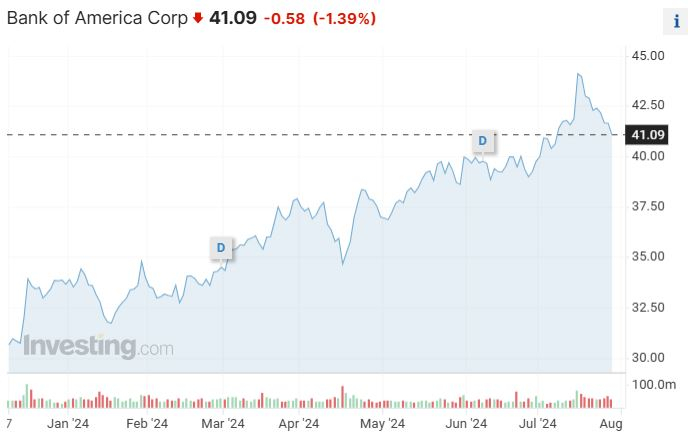 周一(7月29日)提交给监管机构的一份文件显示,这家企业在7月25日至7月29日期间出售了1841.48万股美国银行股票,总计7.67亿美元。