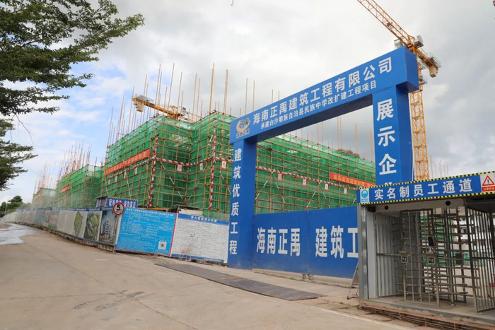 去年9月,白沙民族中学首设高中部,但由于该校高中部校舍改扩建项目尚未完工,首批新生只能在毗邻的海南中学白沙学校上课、住宿。日前,记者再次走进县民族中学改扩建项目,项目现场数十名建筑工人分工协作、有序推进。各类材料有序进出场,施工作业人员分布在不同作业面,全力以赴抢抓工程进度。