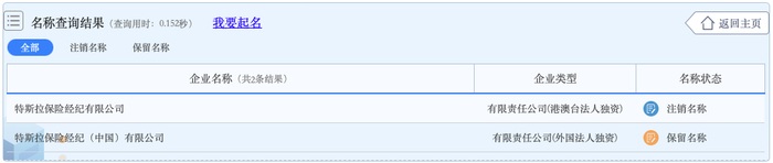 企查查显示,特斯拉汽车香港曾于2020年8月设立全资子公司特斯拉保险经纪有限公司,用于内地的保险经纪业务开展。
